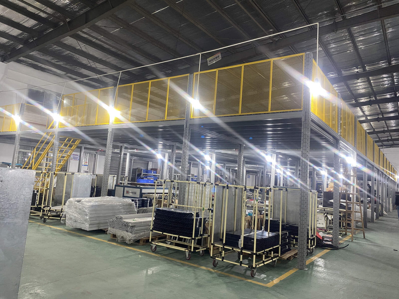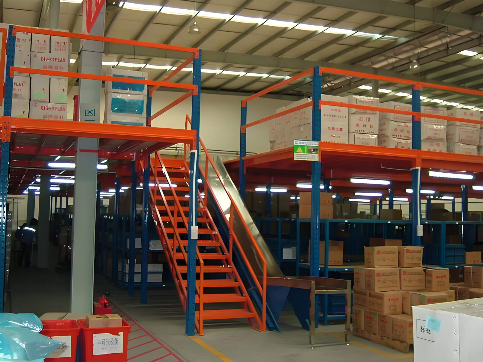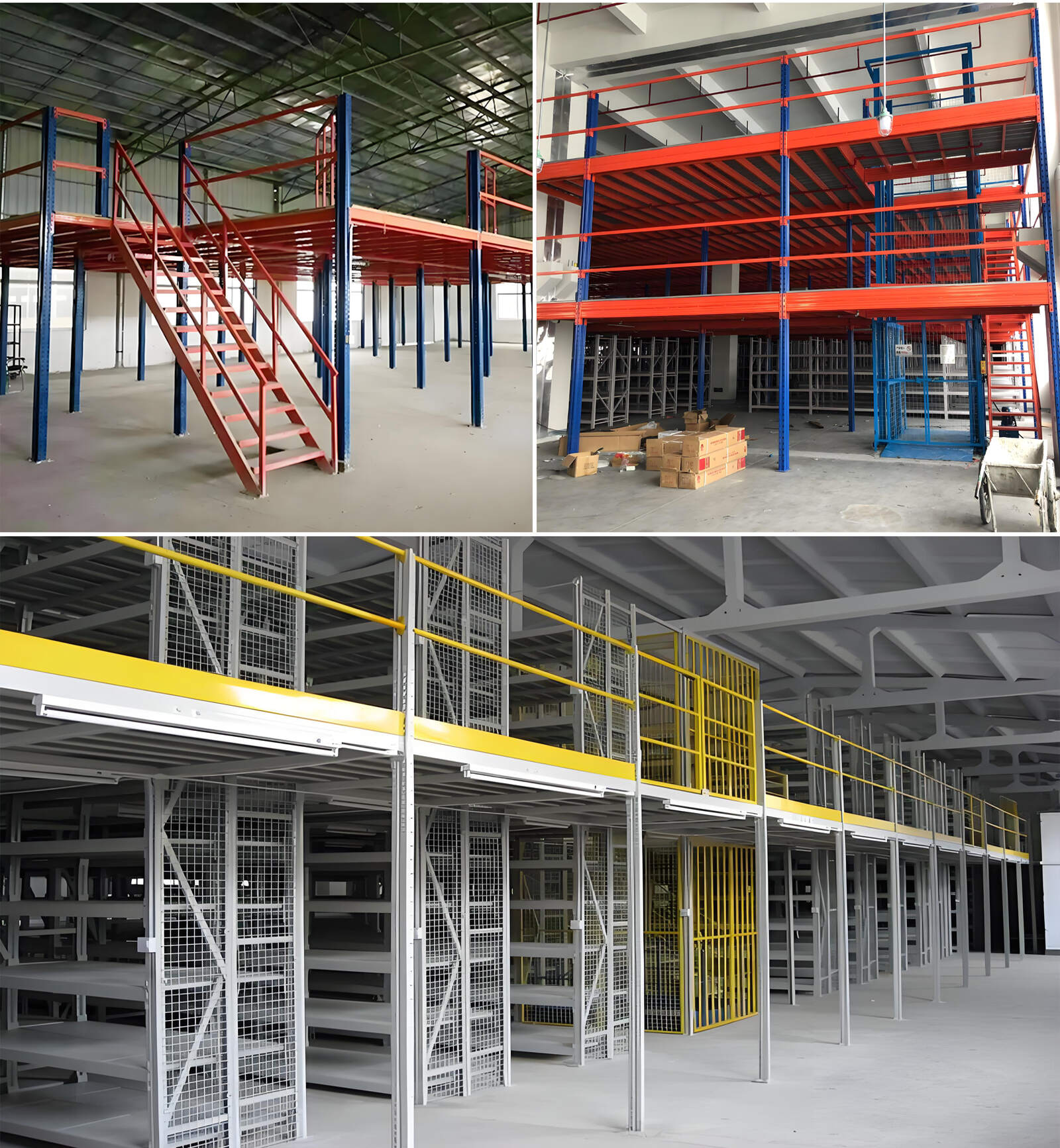 The mezzanine platform is a unique structure that uses shelves as floor supports and can be designed into 2-3 layers according to actual needs. It is equipped with auxiliary facilities such as stairs, handrails and elevators, and can be built on existing shelves or work sites, cleverly increasing the storage area. The mezzanine platform is particularly suitable for scenarios where the warehouse is high, manual access is required, and the storage volume is large. The mezzanine platform is a unique structure that uses shelves as floor supports and can be designed into 2-3 layers according to actual needs. It is equipped with auxiliary facilities such as stairs, handrails and elevators, and can be built on existing shelves or work sites, cleverly increasing the storage area. The mezzanine platform is particularly suitable for scenarios where the warehouse is high, the goods are small, manual access is required, and the storage volume is large, such as electronic product warehouses and small parts storage