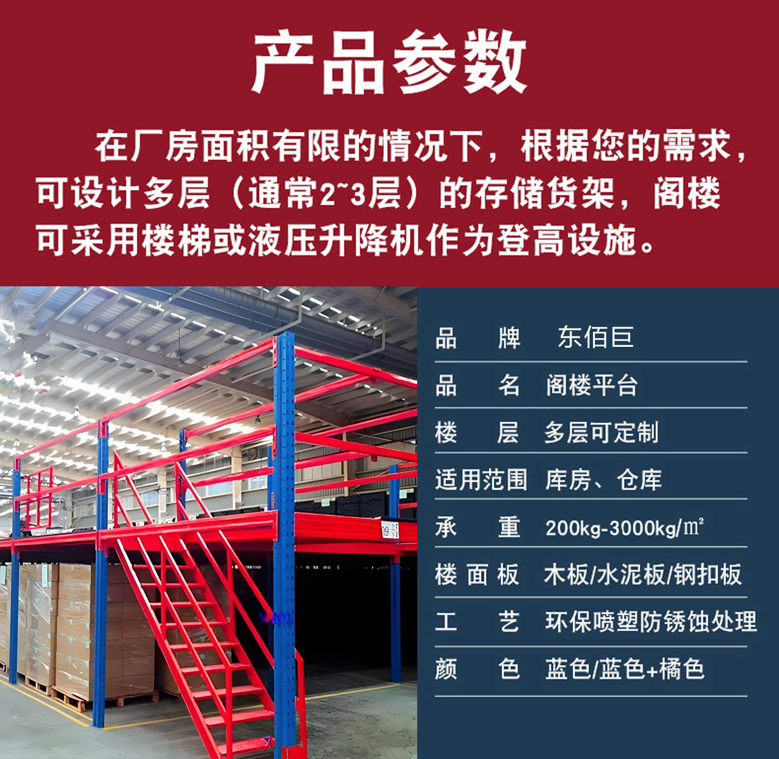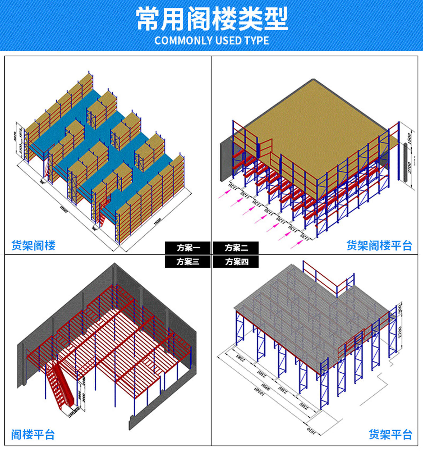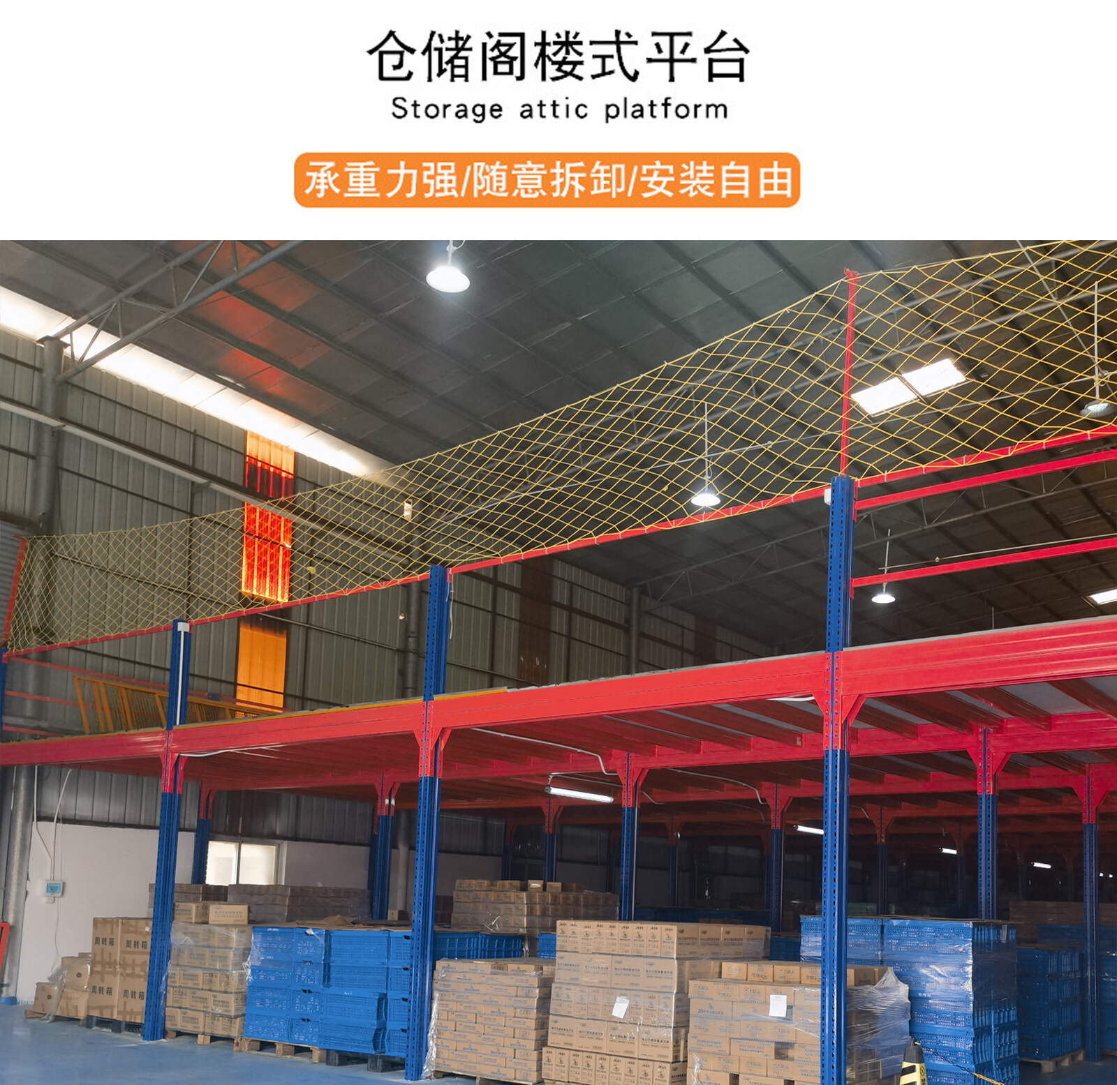 Mezzanine shelf platform: can carry 200-1000kg/square (average load) of goods, with the advantages of low price, easy disassembly and installation.